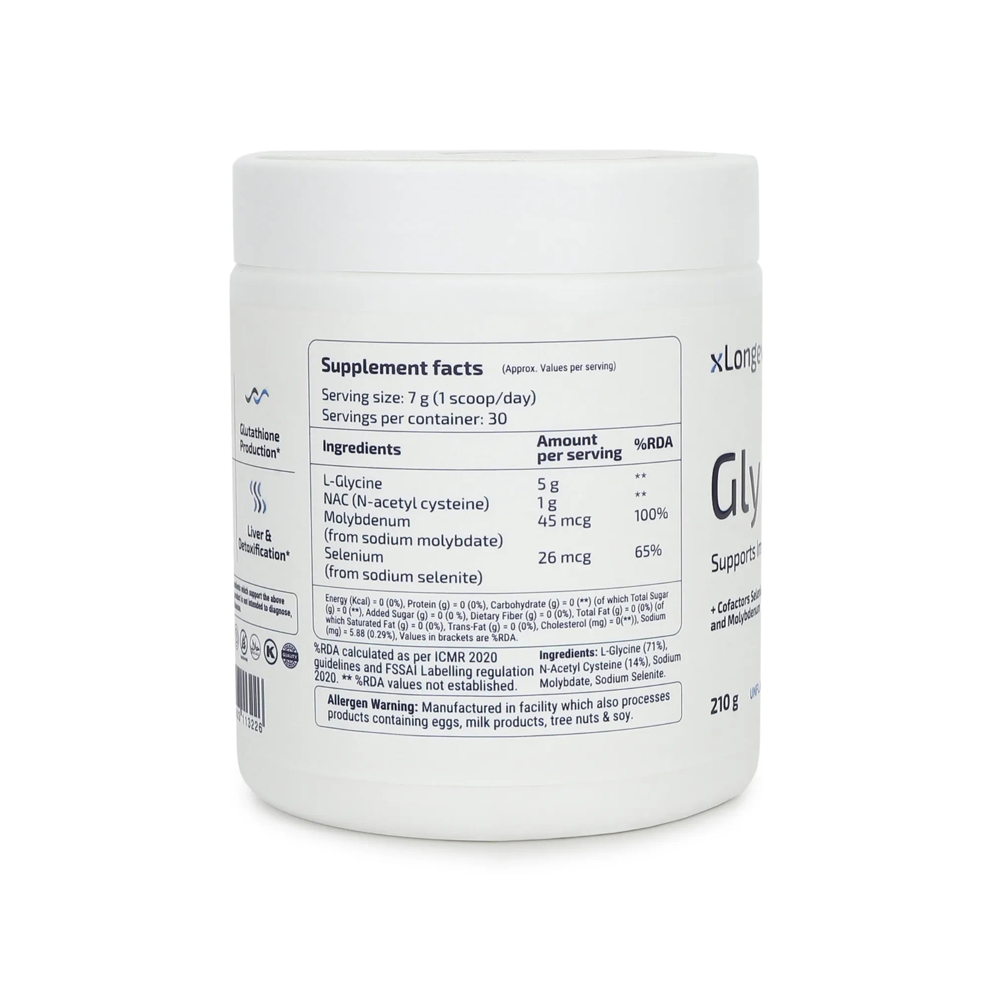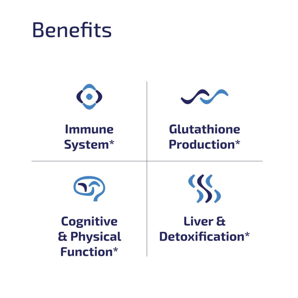 Our GlyNAC apart is a meticulously crafted formula, combining glycine and N-acetylcysteine in a potent 5:1 ratio, essential for synthesizing glutathione, hailed as "The Mother of all Antioxidants". This unique blend not only supports antioxidant defense but also aids in whole body detoxification, enhances immune function, and maintains respiratory health. Moreover, GlyNAC contains vital cofactors like selenium and molybdenum, crucial for glutathione synthesis, with selenium acting as a potent antioxidant and molybdenum supporting detoxification and metabolism of sulfur-containing amino acids. With superior bioavailability compared to glutathione alone, GlyNAC offers essential support for cellular health and overall vitality.